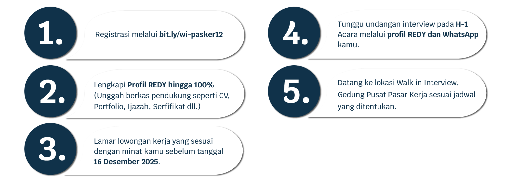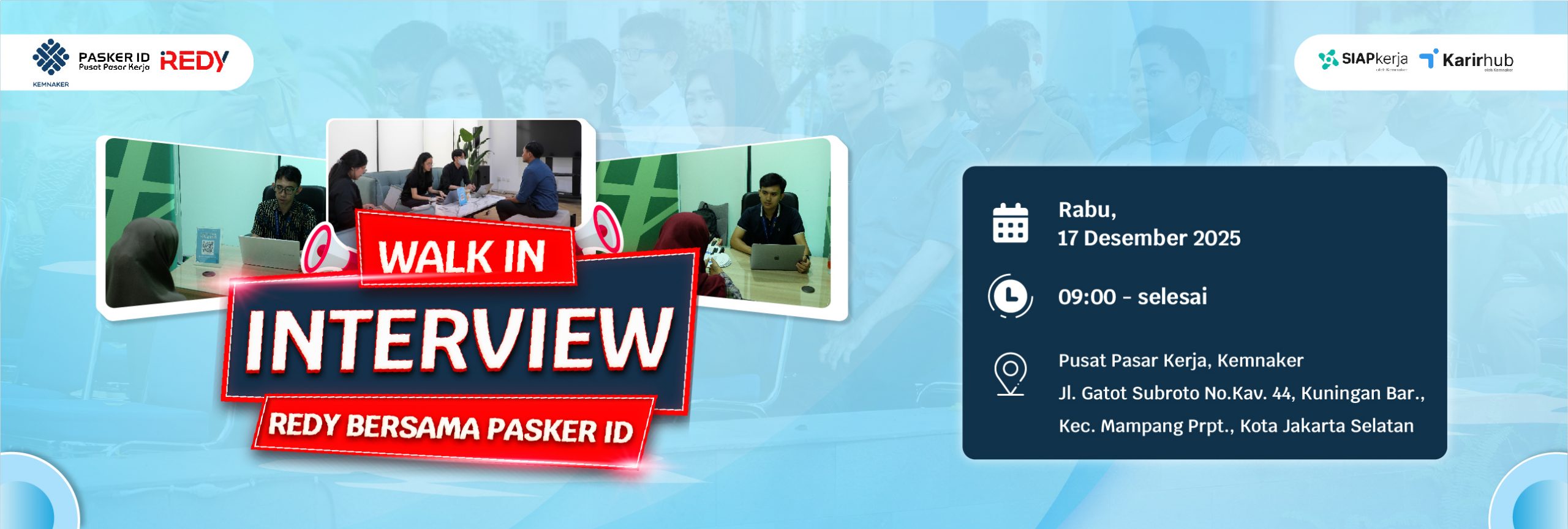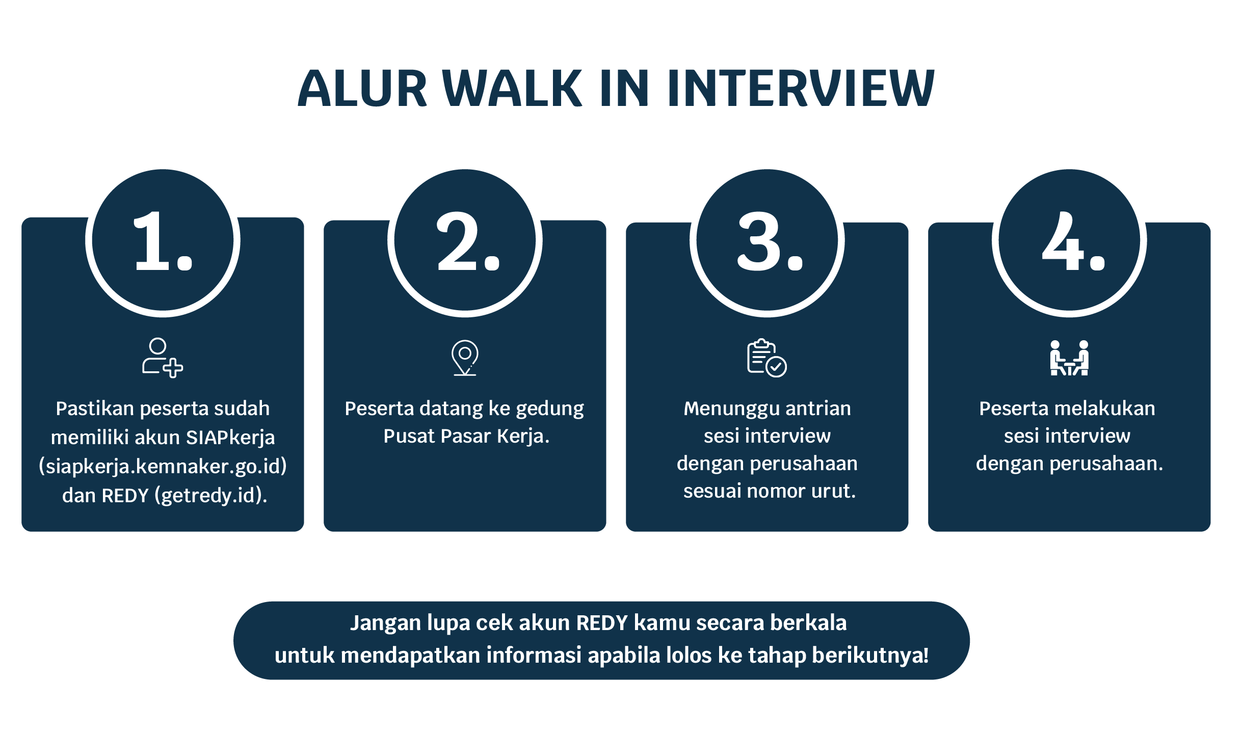 Tata Cara Mengikuti Walk In Interview Tutorial Menggunakan Website atau App REDY Perusahaan yang mengikuti Walk in interview Lamar Sekarang Lamar Sekarang Lamar Sekarang Belum Punya Akun REDY? Daftar Sekarang