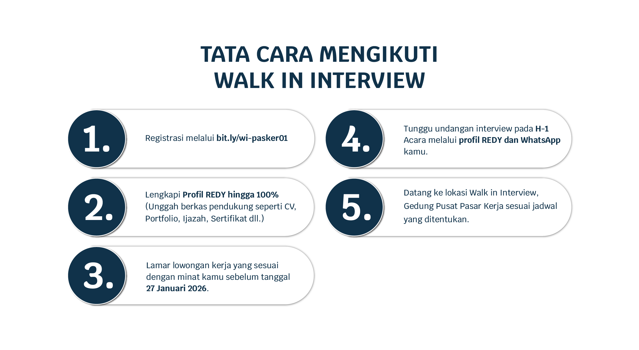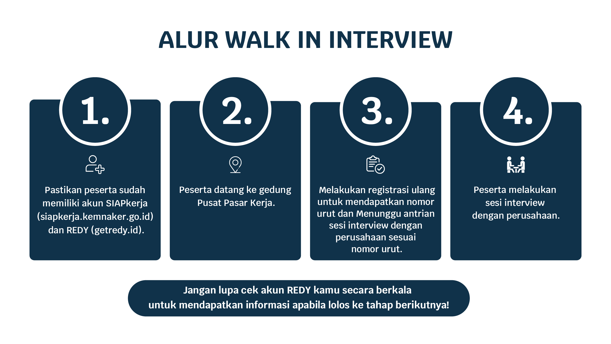 Tutorial Menggunakan Website atau App REDY Perusahaan yang mengikuti Walk in interview Lamar Sekarang Lamar Sekarang Lamar Sekarang Lamar Sekarang Belum Punya Akun REDY? Daftar Sekarang